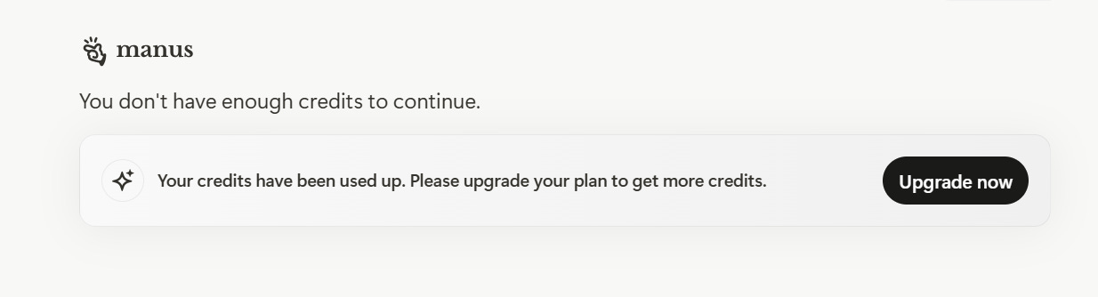 Manus has credit-based pricing, and once you run out of credits, it simply stops. This happened to me all of a sudden in the middle of research. That was the end of the honeymoon with Manus. I recognize that services must be paid for, but from the perspective of the user, the problem is that it is impossible to forecast how many credits a task will require. Anh Tho Chuong wrote a good piece about this problem this week at